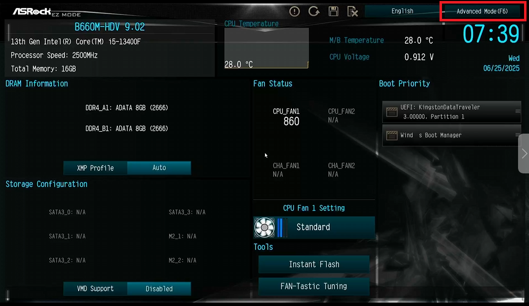 - Войдите в Bios