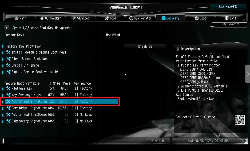 - Найдите в данном разделе параметр Authorized Signatures, выберите его и нажмите Enter.