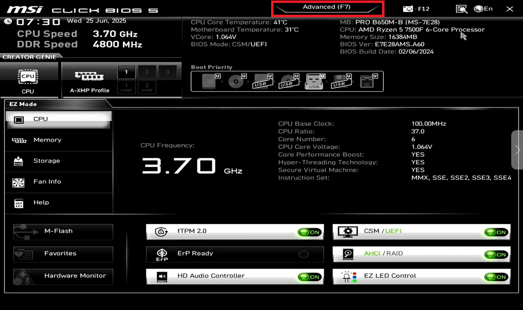 Для сохранения настроек в BIOS материнской платы MSI нужно нажать клавишу F10 после внесения изменений. После нажатия F10 появится окно подтверждения, в котором нужно выбрать "Сохранить и выйти" (Save & Exit), так же вы можете войти во вкладку Save & Exit, выбрать опцию Save & Exit Setub и нажать Yes, настройки применятся и ПК перезагрузится.